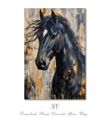 Decorative Painting of a Wild Black Horse – Modern Art with Abstract Background | MTA38